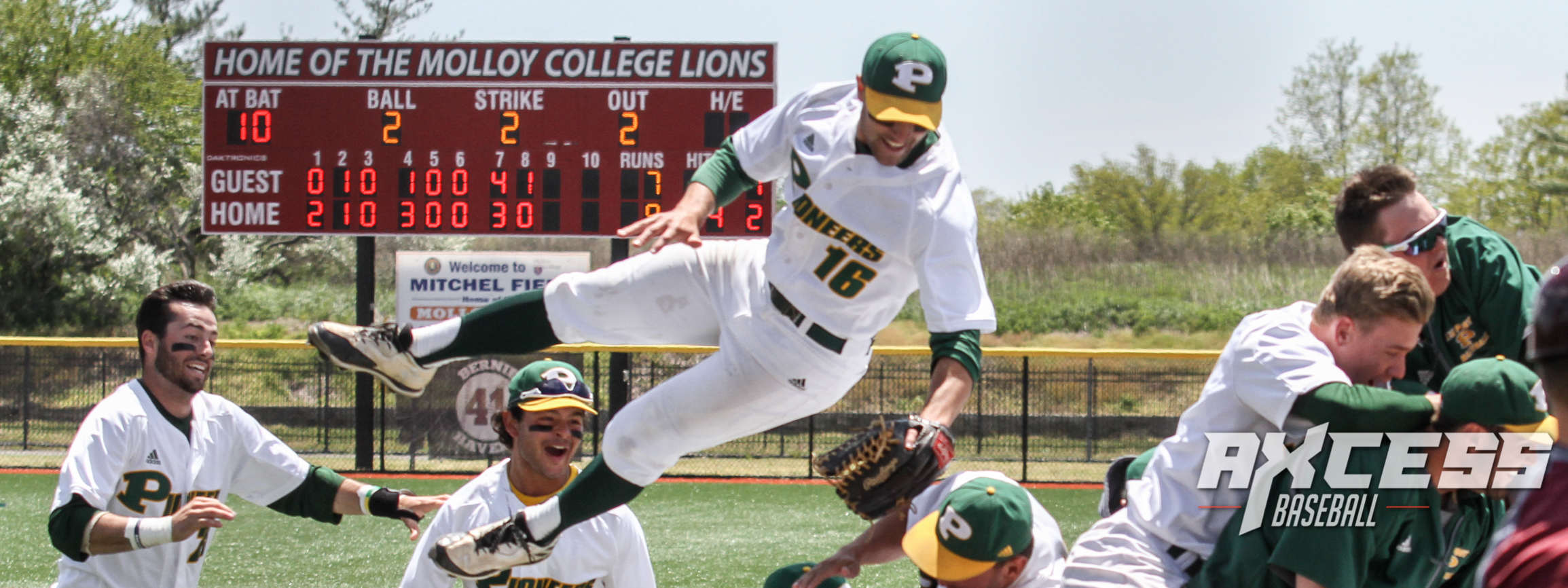 Fast forward to the seventh, the Molloy bats broke out. With one out, the next three batter reach base loading the bases for Anthony Alberghina who got plunked bringing home a run. The next batter was Angelo Navetta who hit a sacrifice fly to center scoring another run. Mike Rahn then came up big with a two-run single tying the game at six. The game looked like it was going to pull a 180, but immediately into the bottom of the seventh, Anthony Vaglica hit a solo shot to give the Pioneers a one-run lead. After the homer, they put together four straight singles including a two-run hit by Jimmy Mendyk. Heading to the eighth, LIU Post led 9-6 until an RBI triple from Anthony Galanoudis brought another run home, but that would be all they could muster up for the game.