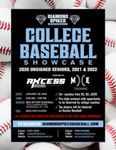 We will be co-hosting a College Showcase at MaX Effort Baseball on January 20, 2020