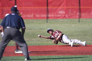 Things got dicey in the sixth. Mike DiFilippo started the inning off with a well-struck triple to right center field to fire up his crowd and dugout. Calloway kept his composure and got the dangerous James Goff to pop out to first and then Colin Biesel ripped out to Rouleau at third who not only caught the ball but made an amazing play to dive at the base to beat DiFilippo for an inning-ending double play. It was the type of big-time, momentum-killing play that they needed.